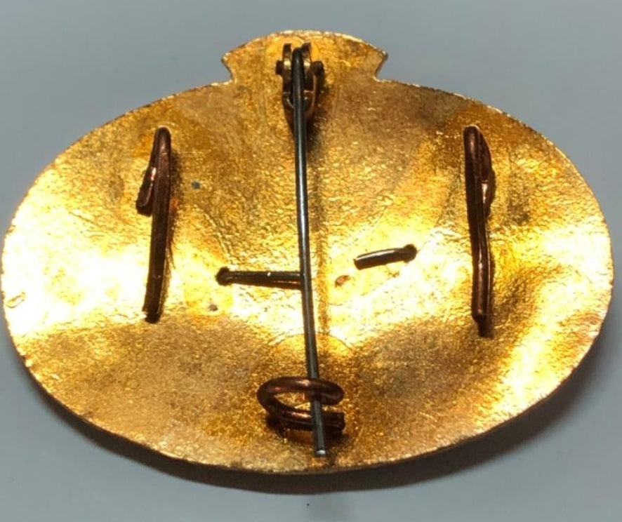 In guter Kondition. Seitliche Sicherheitsnadeln. Hergestellt aus Emaille
