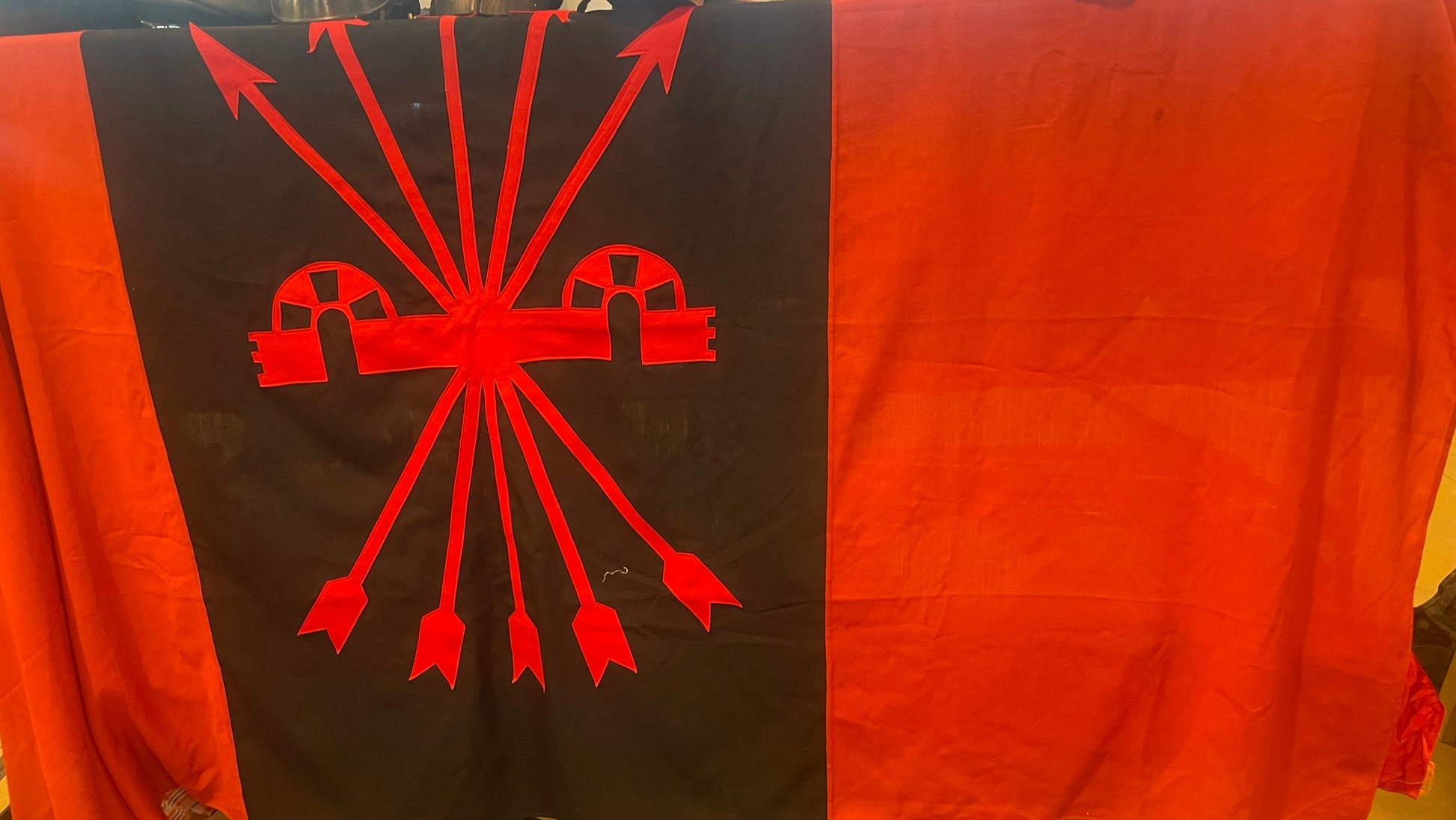 Muy buen estado de conservación, flechas bordadas sobre bandera.