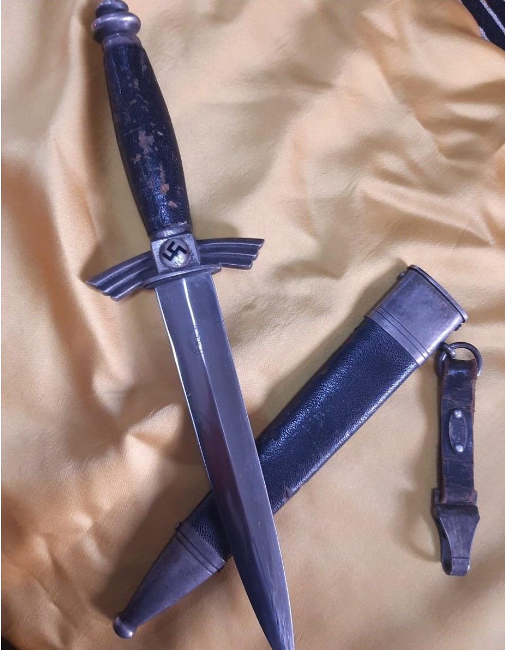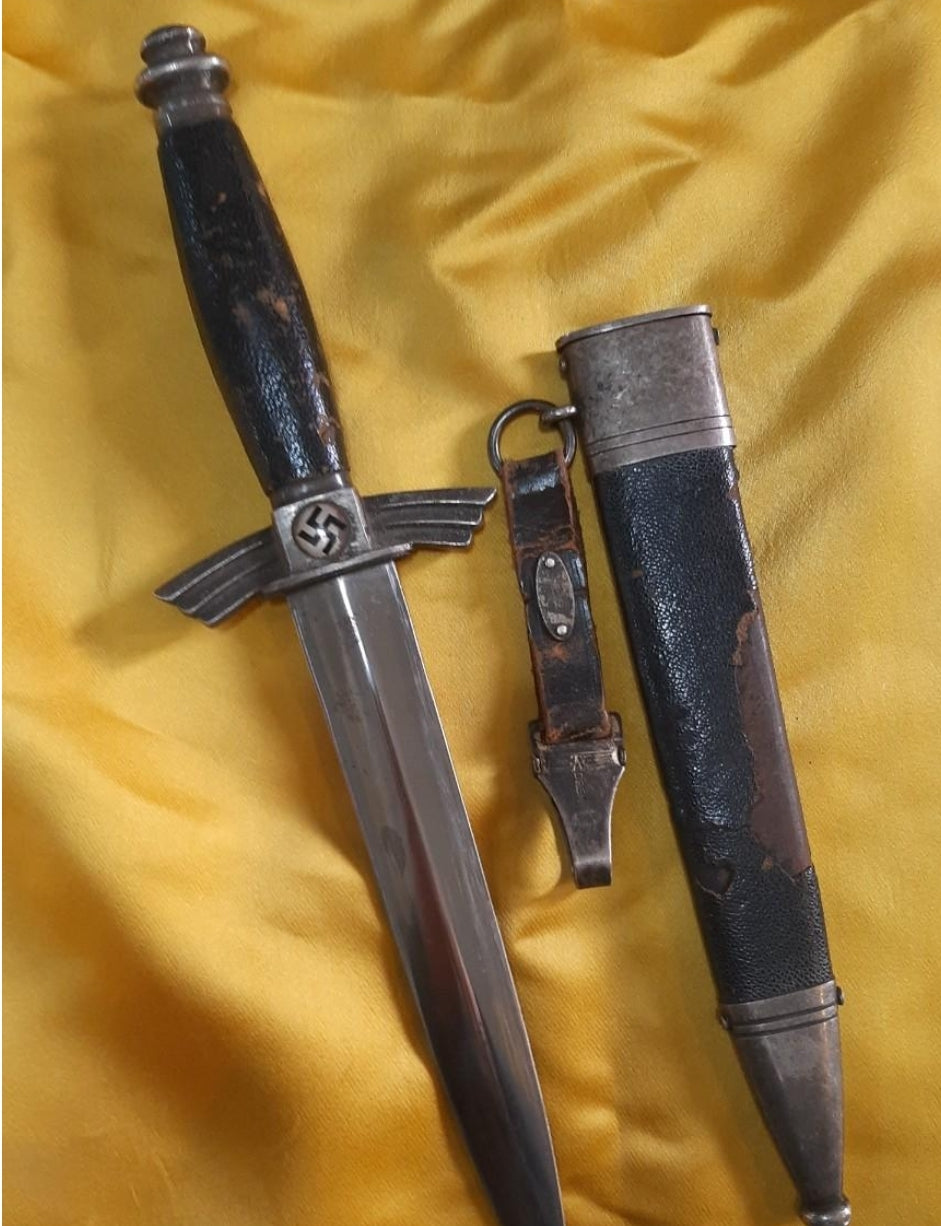 Daga original de oficial alemán de la Segunda Guerra Mundial. Con marcas en hoja y vaina.
