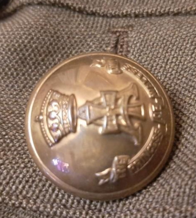 British officer's tunic in green field cloth and complete with all insignia etc. some minor moth spots and with tailor's label inside. Comes with a group photo of British officers