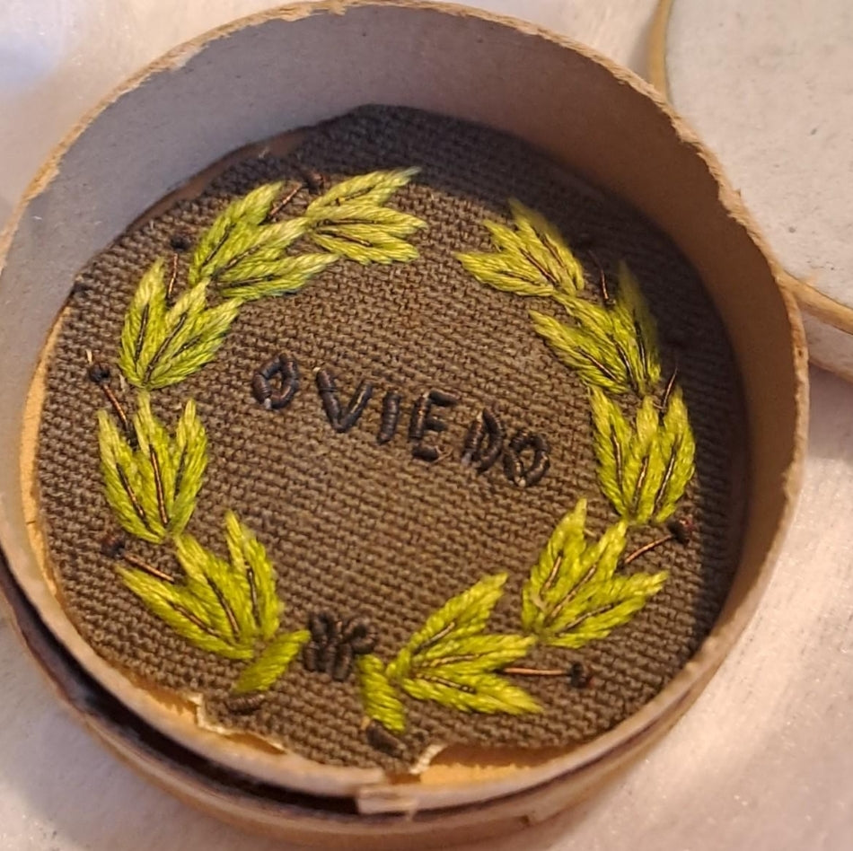 Beautiful quality of embroidery for the defenders of Oviedo on a green background and in a box