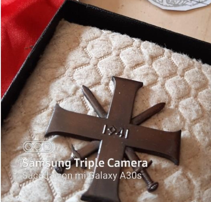 First class badge with 2 hooks for German SS uniform in the Second World War. With its original box in perfect condition and original guaranteed.