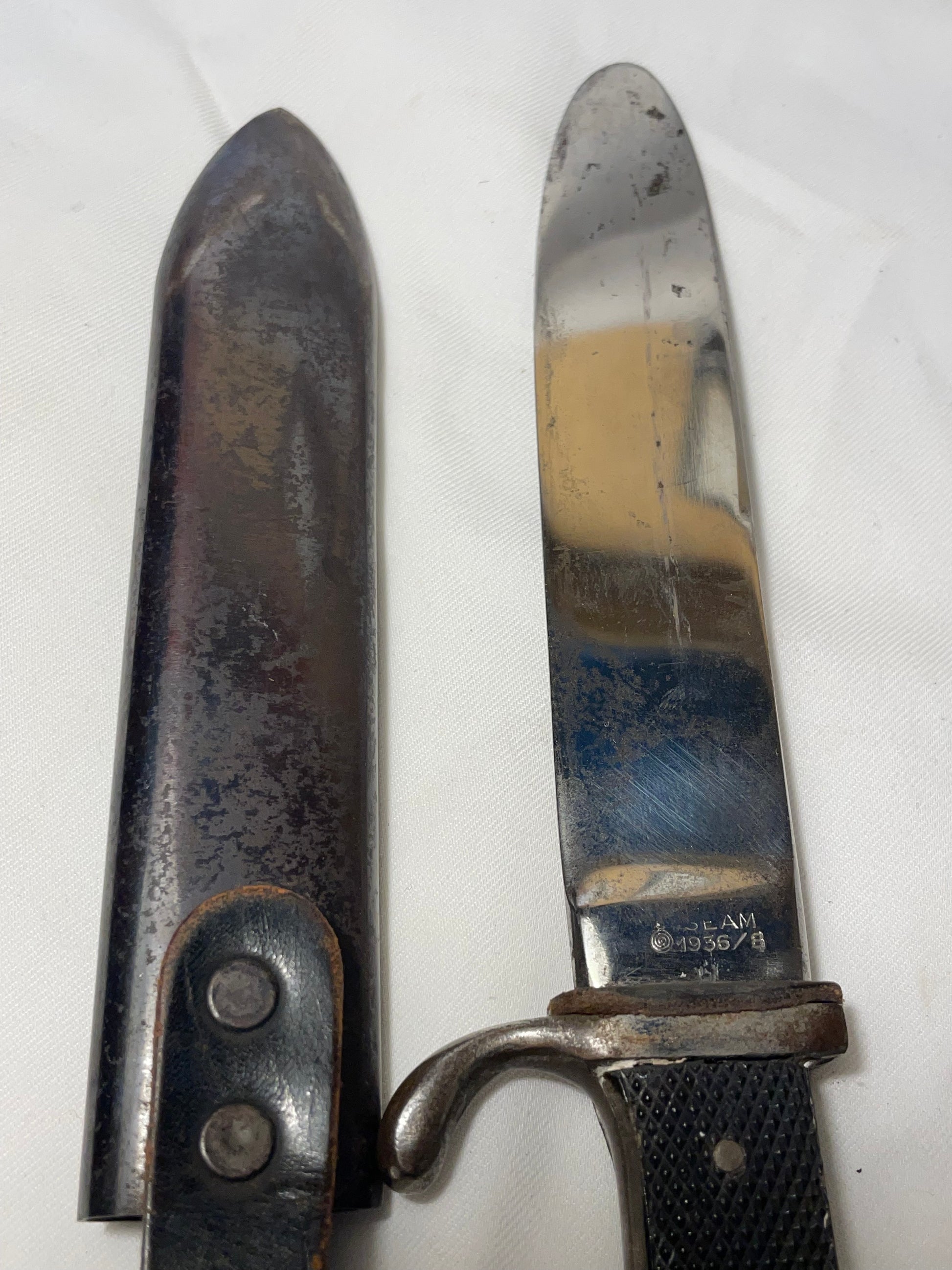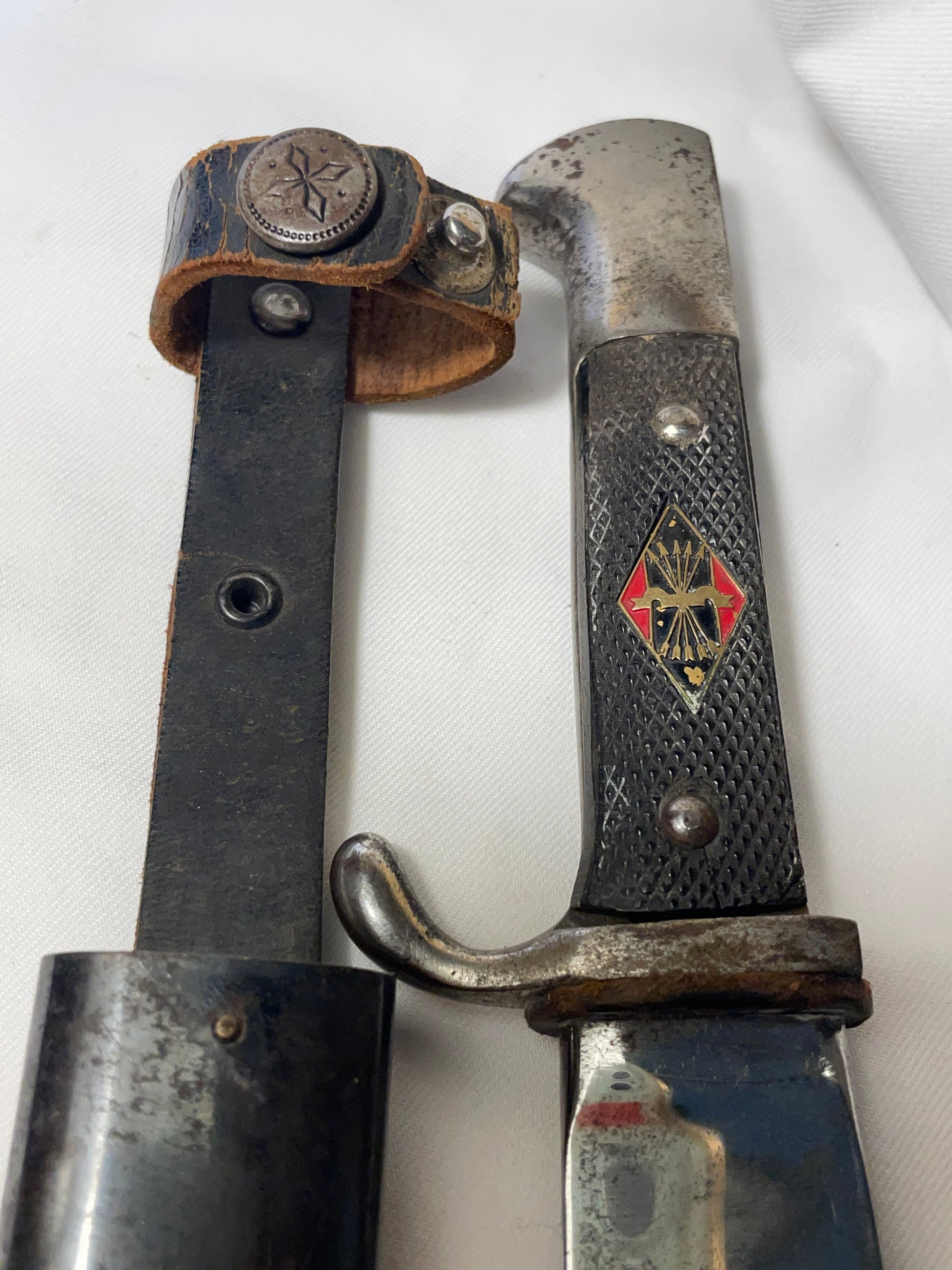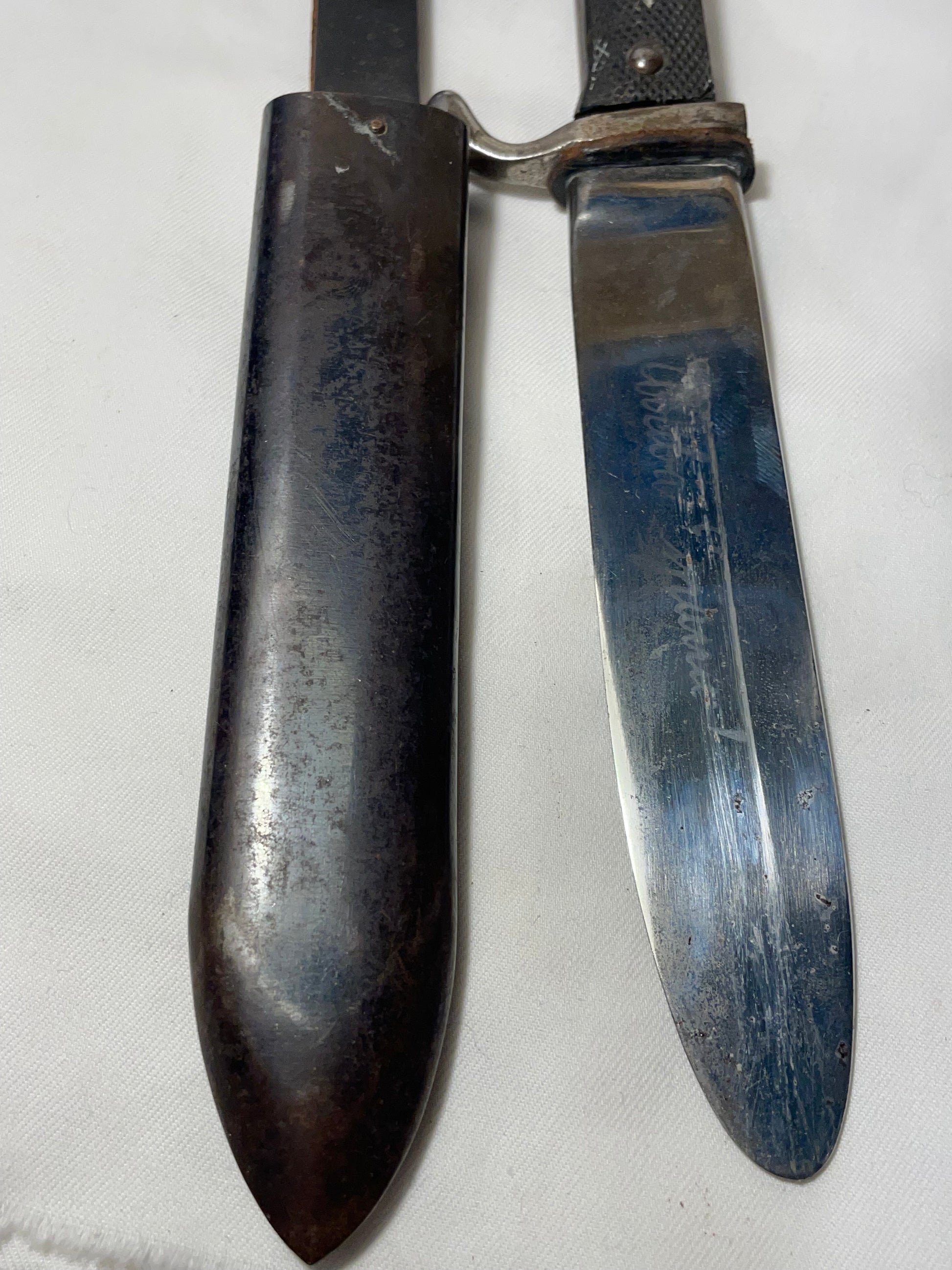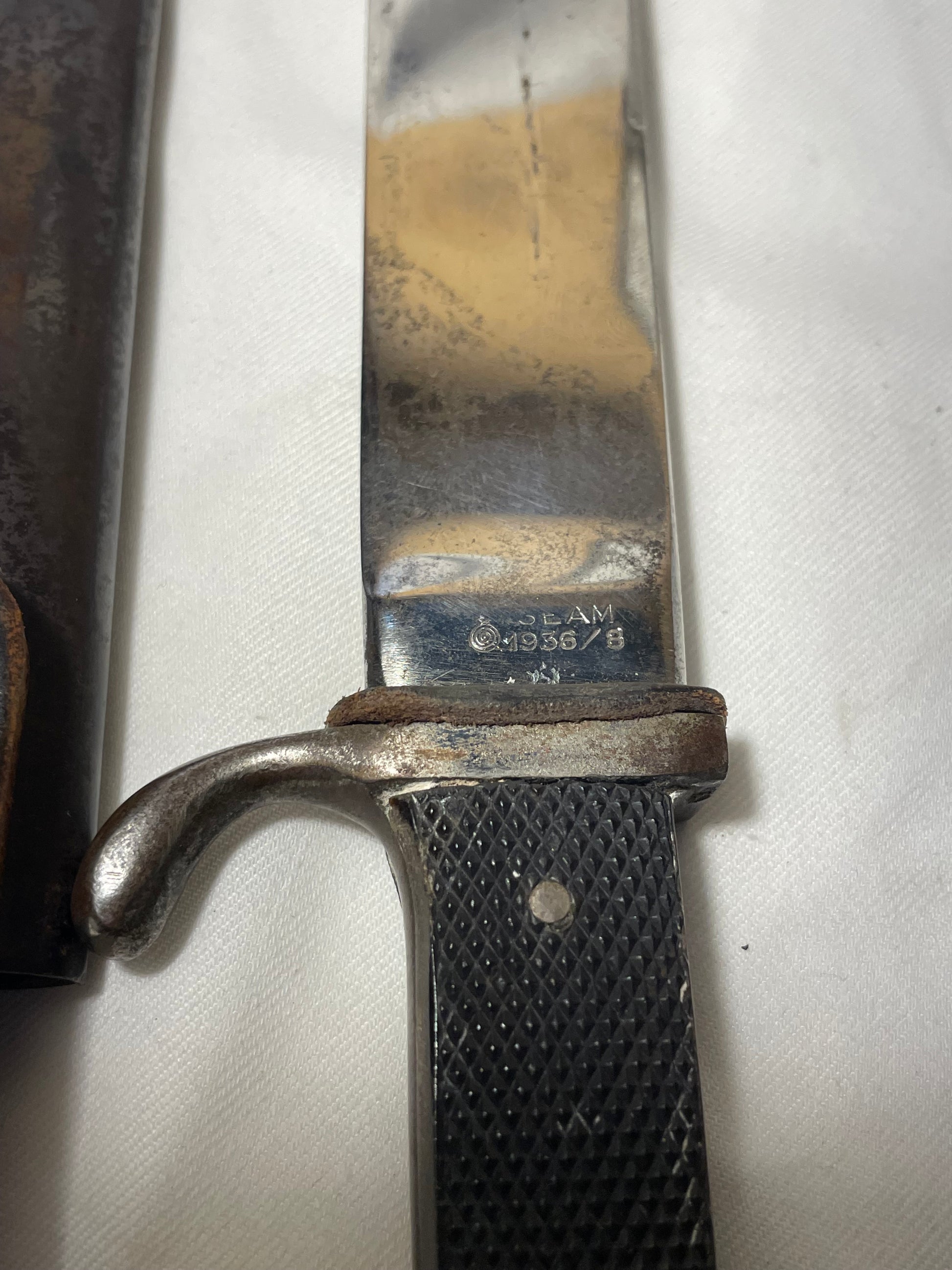 Daga totalmente original de juventudes de Falange con la hoja grabada con marcajes Arriba España y SEAM. En un buen estado, pieza rara