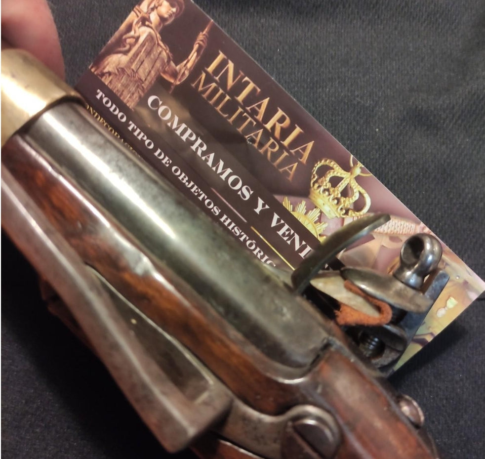 Flintlock mechanism pistol in good condition according to French military regulations from approximately 1815. The barrel is made of steel with functioning mechanisms approximately 35 cm long and has its belt loop, signed by the Charleville pd armory. Like all Weapons of this type require transfer in the weapons book issued by the Civil Guard Weapons Intervention
