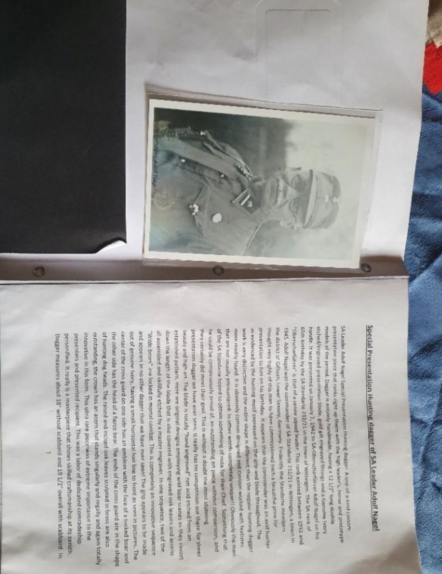 German hunting dagger, SA tribute with photo of the owner and documentation of originality