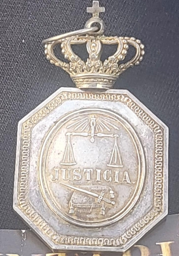 In silver with monarchical crown from the time of Elizabeth 2 with its cord
