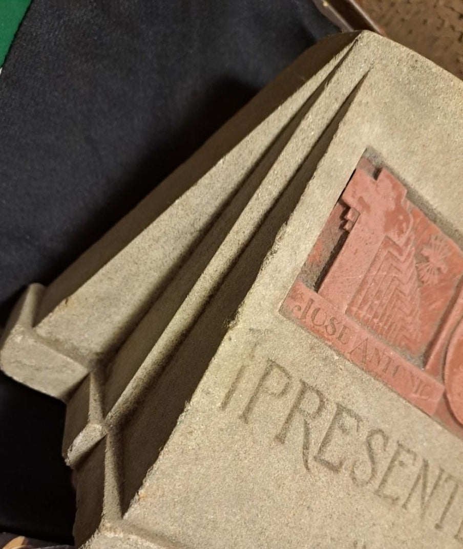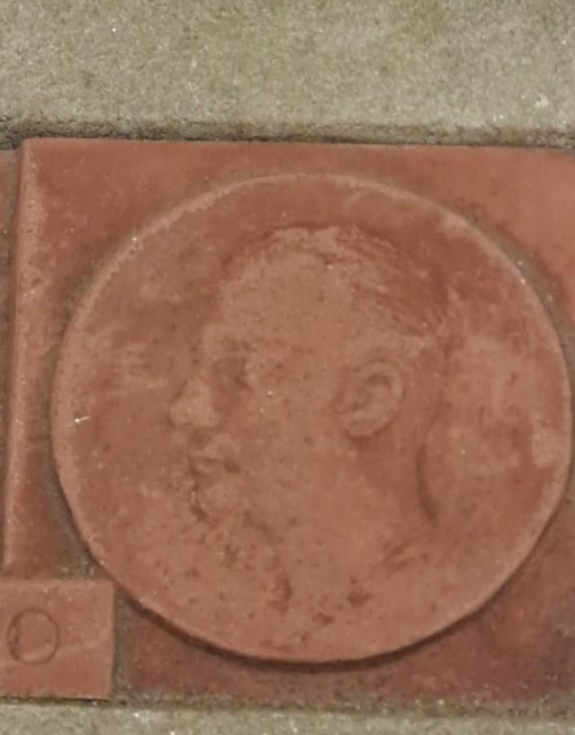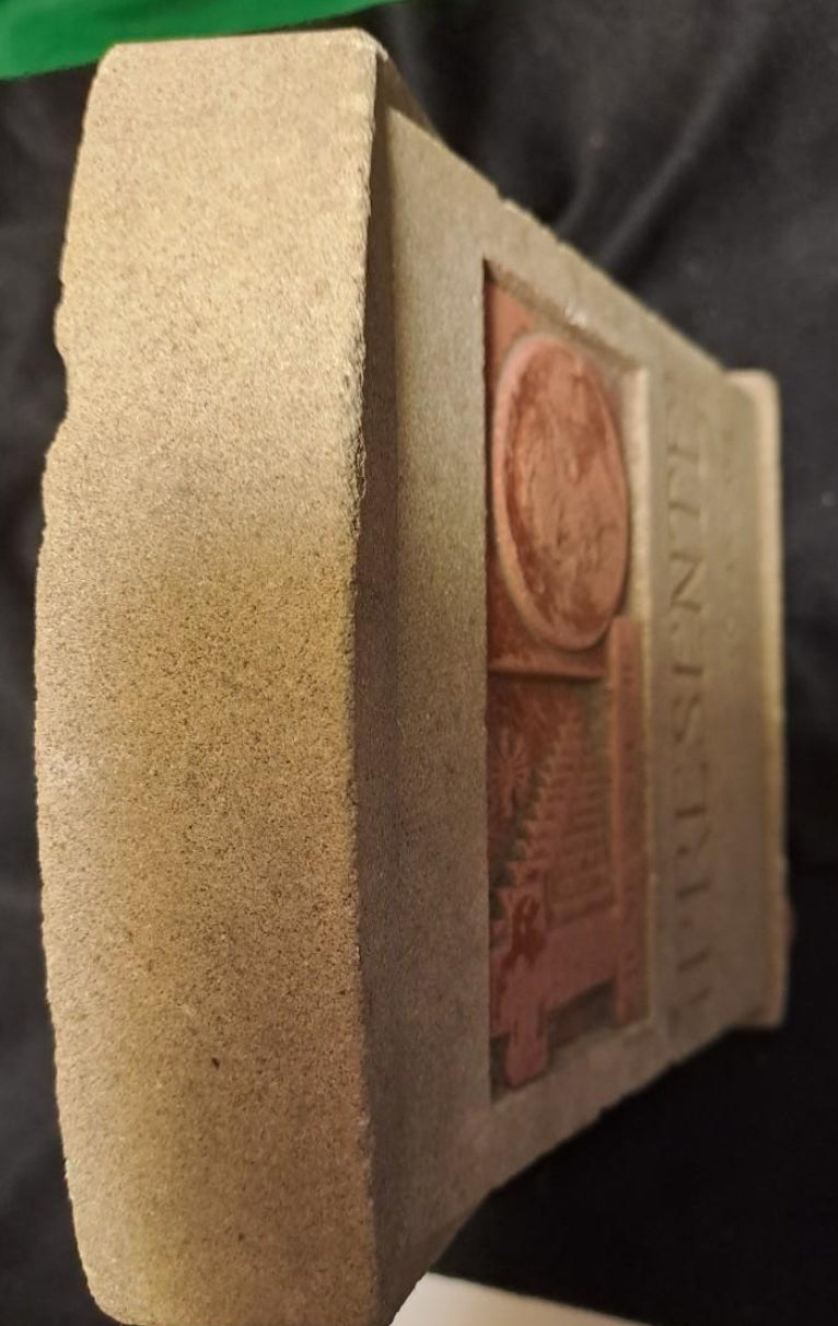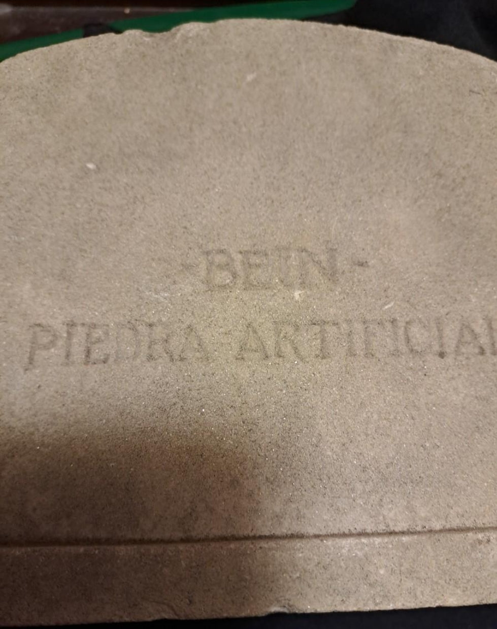 Stone plaque in the Italian fascist style of homage with the Falange shield and portrait of José Antonio, founder of the Falange. Mark on the back