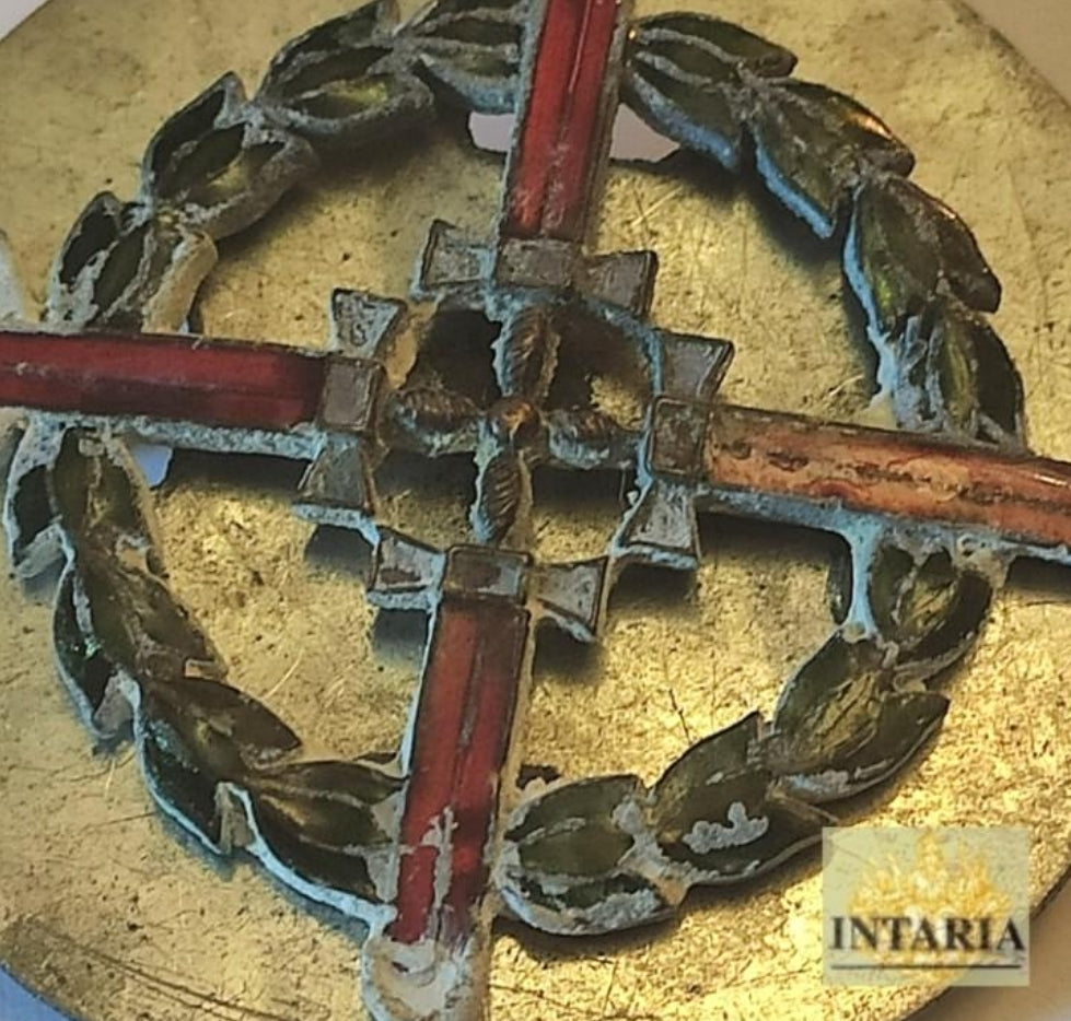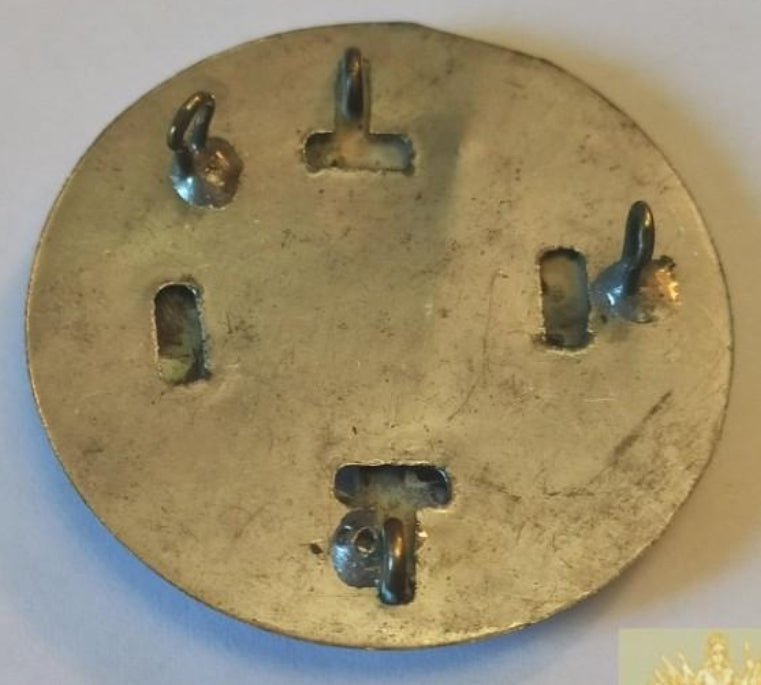 Plate of size princess, of approximately 5 cm of diameter the plate, of the order of San Fernando..piece with 2 rear hooks and with a metal plate for its placement.by its size corresponds to the time of Franco It is in enamelled metal and part of the necklace of the order or for collective of sleeve.