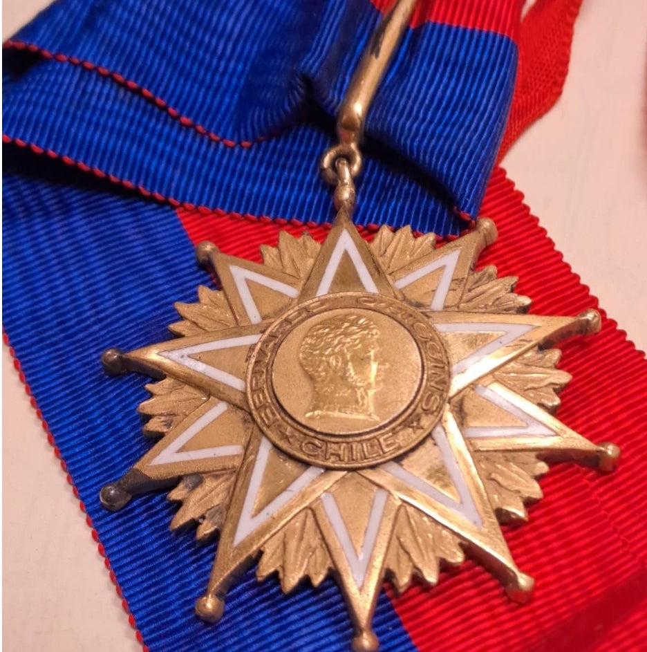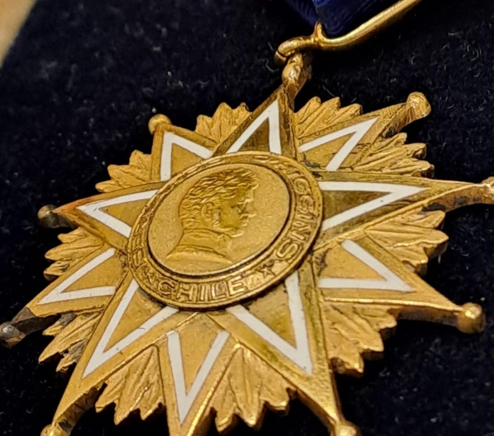 Medal given to a Spanish diplomat in good condition, model made of gilt silver and enamel and in the box with its ribbon.