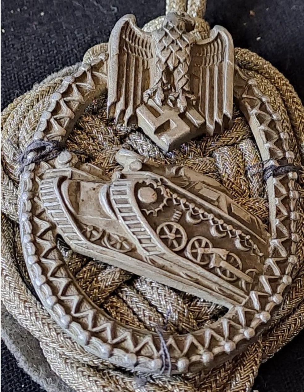 In good condition, approximately 6 cm in diameter, the insignia is from a Panzer 1 in silver aluminum. ➖️ restoration of cord and hooks but badge is guaranteed original