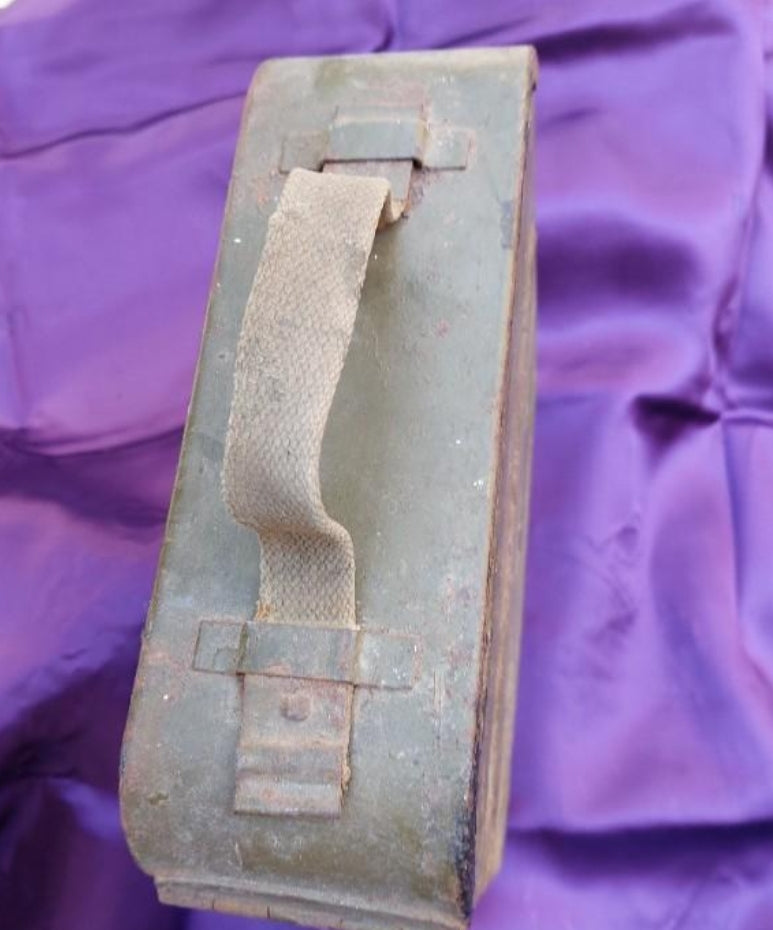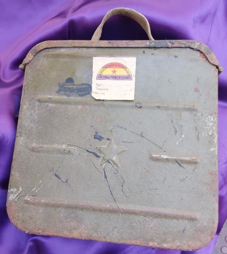 Metal box for Maxim machine guns and ammunition holder. It has an old Republic sticker attached